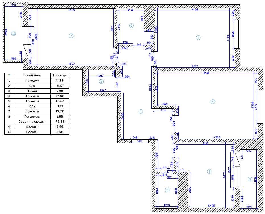 Общая: 74 м2